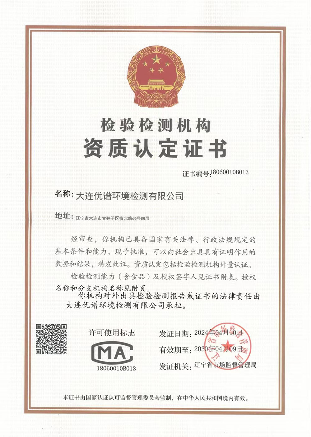 大連優(yōu)譜環(huán)境檢測有限公司是中國領(lǐng)先的第三方權(quán)威檢測機(jī)構(gòu)已取得CMA中國計(jì)量認(rèn)證資質(zhì)認(rèn)定,遼寧省生態(tài)環(huán)境廳備案,具備向社會(huì)出具公正數(shù)據(jù)的資格。擁有國際先進(jìn)的檢測分析儀器和經(jīng)驗(yàn)豐富的檢測化驗(yàn)工程師團(tuán)隊(duì)。